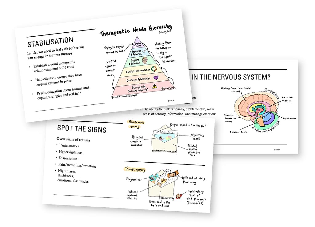 Suitable for trainee therapists, and those not yet experienced in working with trauma. This is not a qualification to enable you to offer specialist trauma therapy; this is an introduction to working in a trauma-informed way with clients who are not experiencing severe trauma symptoms.